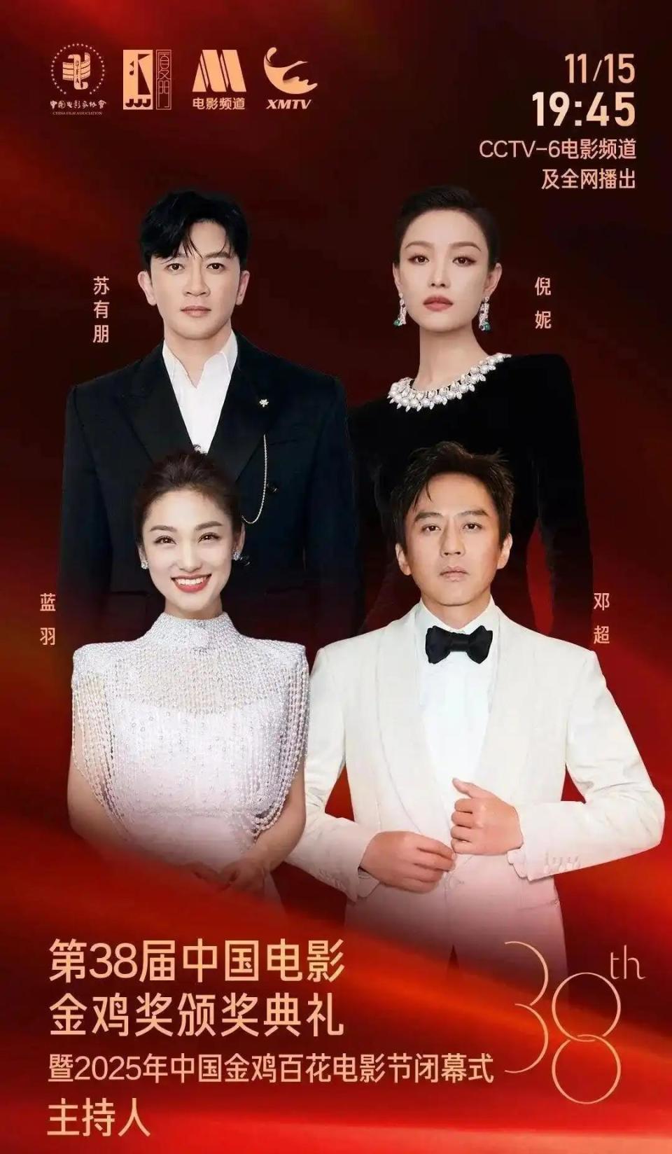 11 月 14 日,光明网和手机网易网同步官宣:倪妮将首次主持金鸡奖闭幕式,搭档的是蓝羽、邓超、苏有朋。