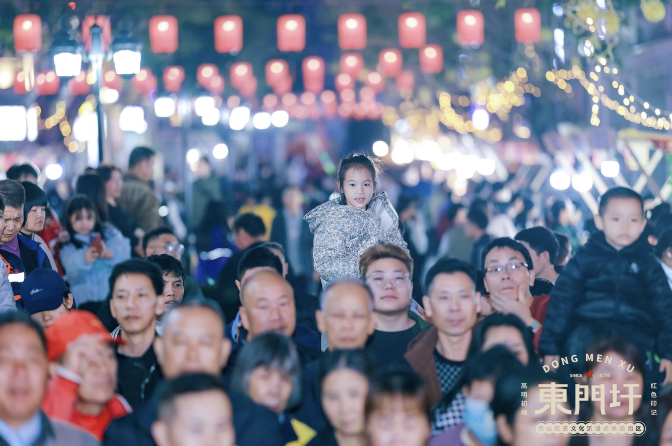 当晚,东门圩元旦嘉年华晚会举行,舞台上舞蹈表演、歌曲演唱、新商家进驻仪式、烟花秀等活动轮番上演,舞台旁的美食摊位、各色商家与互动游戏交织,将氛围推向高潮。数据显示,当晚东门圩吸引人流4.2万人次,促进消费56.3万元。