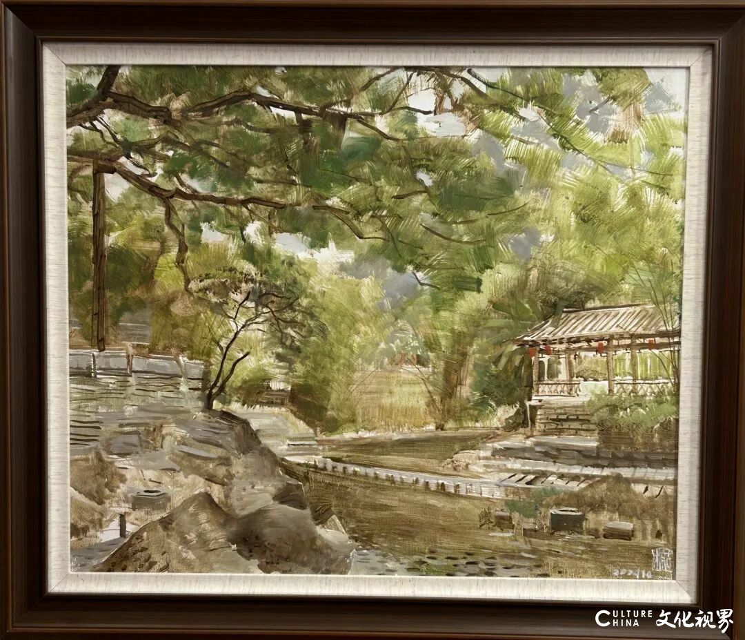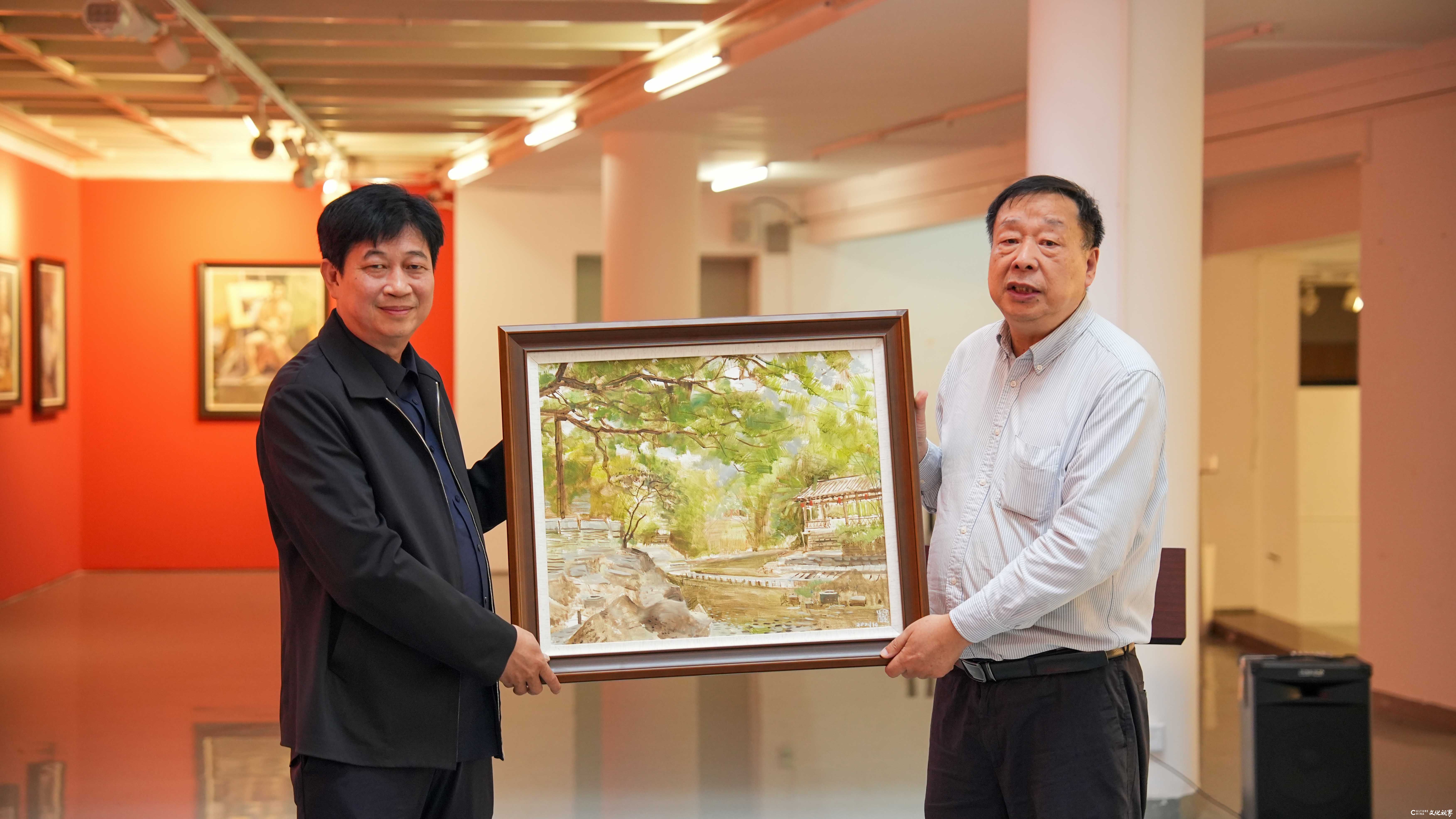 尚辉强调美术教育需重视审美教育,称赞古棕老师油画色彩调和的特点及画展对提升审美水准的意义。