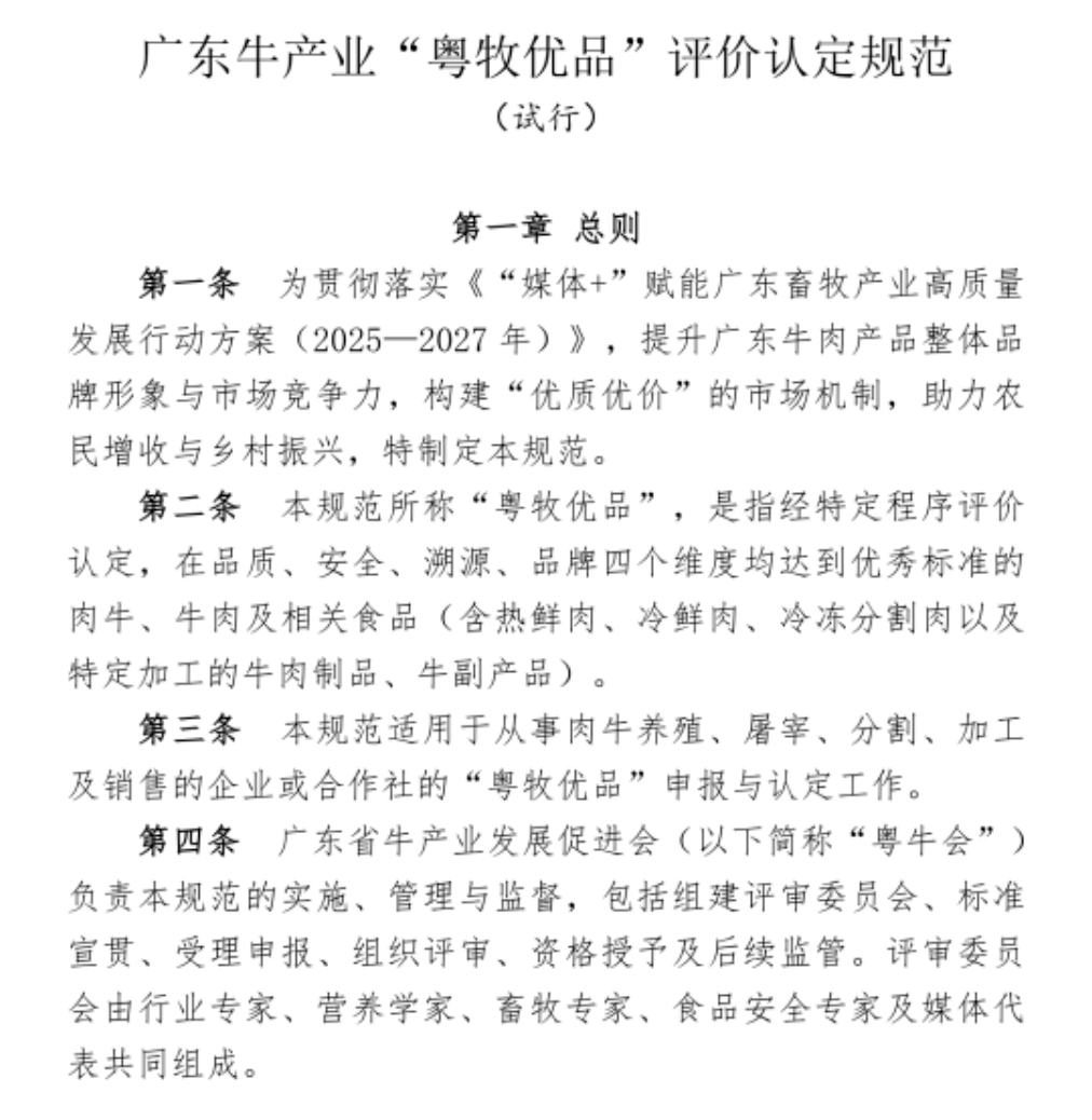 “媒体+”正成为破解这些难题的关键抓手。10月18日,广东省牛产业发展促进会率先发布《广东牛产业“粤牧优品”评价认定规范(试行)》。这是首个“媒体+粤牧优品”评定标准,标志着广东在打造具有公信力与影响力的畜牧业区域公用品牌上,迈出关键一步。