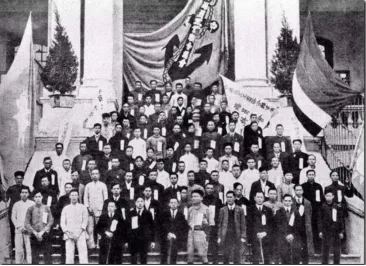 1925年7月3日,省港罢工委员会成立,图为委员会部分成员合影,左五为苏兆征(图片来源:广州市纪委监委网站)