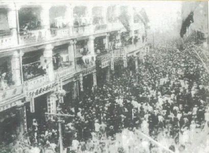 香港居民聚集在香港海员工会门前庆祝香港海员大罢工胜利(图片来源:苏兆征故居陈列馆)