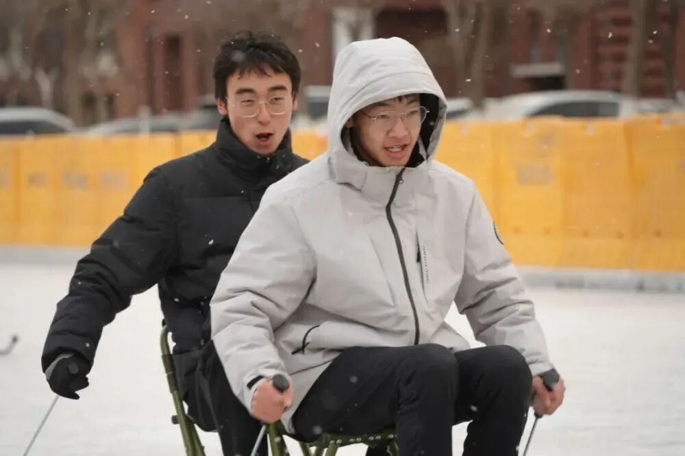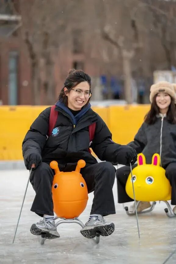 “校外的河面还没有完全结冰,学校却给我们浇出了一个滑冰场,太惊喜了!这里就像一个解压乐园,在备考期末考试的间隙,约上几位好友坐着小滑冰车玩上一会儿,还能结识新的朋友,大大缓解了学业和科研压力,拉满了快乐值,感受到了学校满满的宠爱!”2025级教育学院硕士生袁梦雅说道。