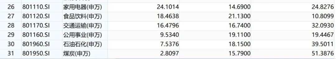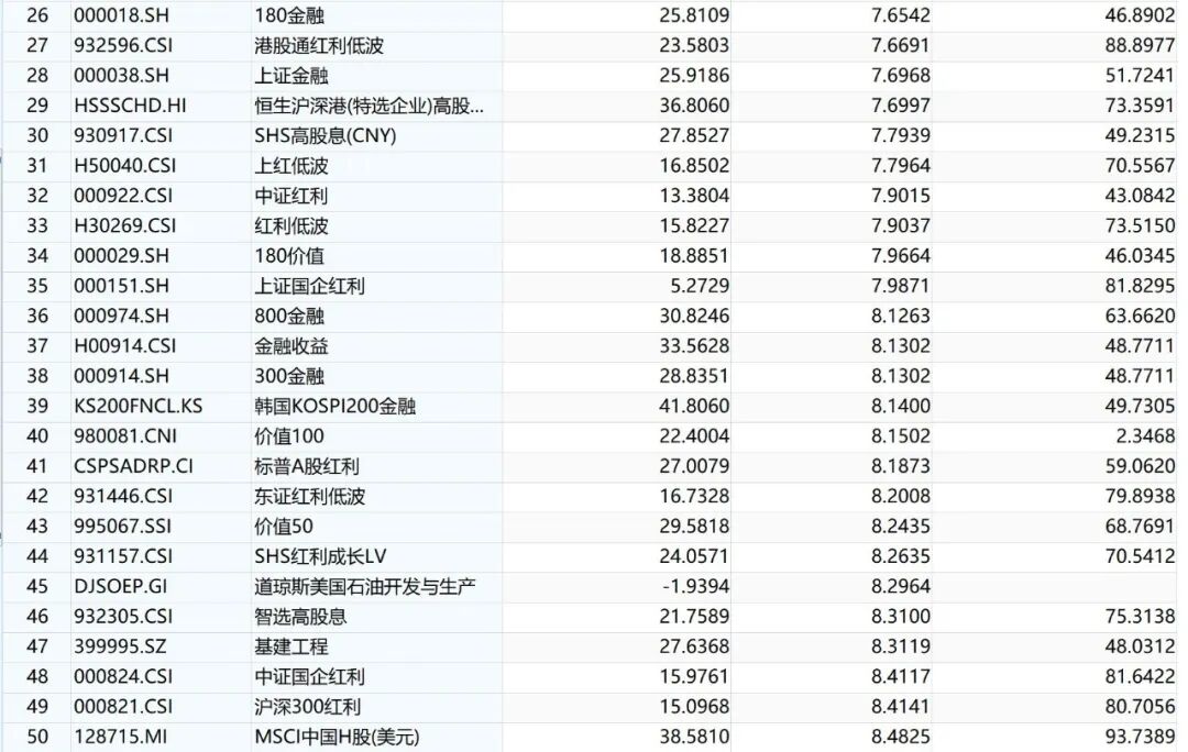 市场可交易指数最新市盈率(TTM )后50基本为高股息、高红利、金融行业指数等。