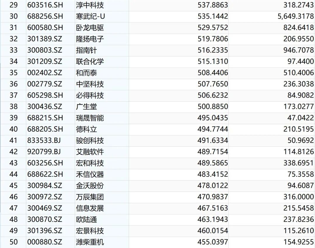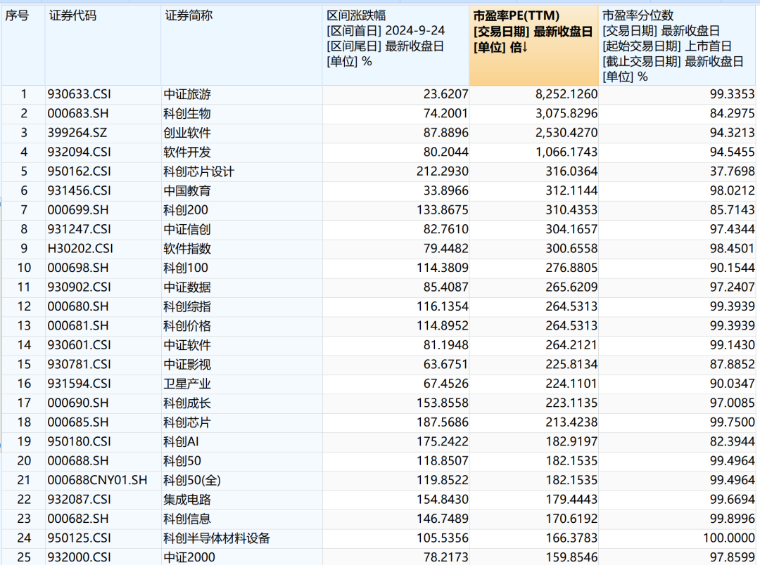 经过1年的牛市,市场可交易指数最新市盈率(TTM )前50 不少和涨幅TOP 50重合。